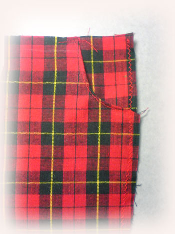 赤いチェックのズボンを作成しています。