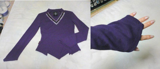 ④ 紫の袖長VネックTシャツ。 Vネックの