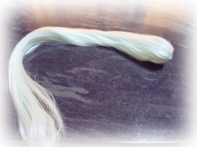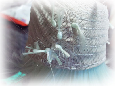 そして、乾燥したらウィッグの裏の結び目から飛び出して