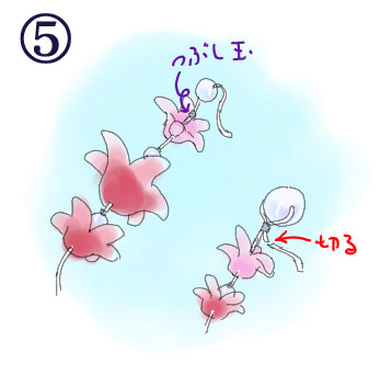 ※初めの方は、つぶし玉で花と花の間に感覚を空けて、徐々に花と花の感覚を